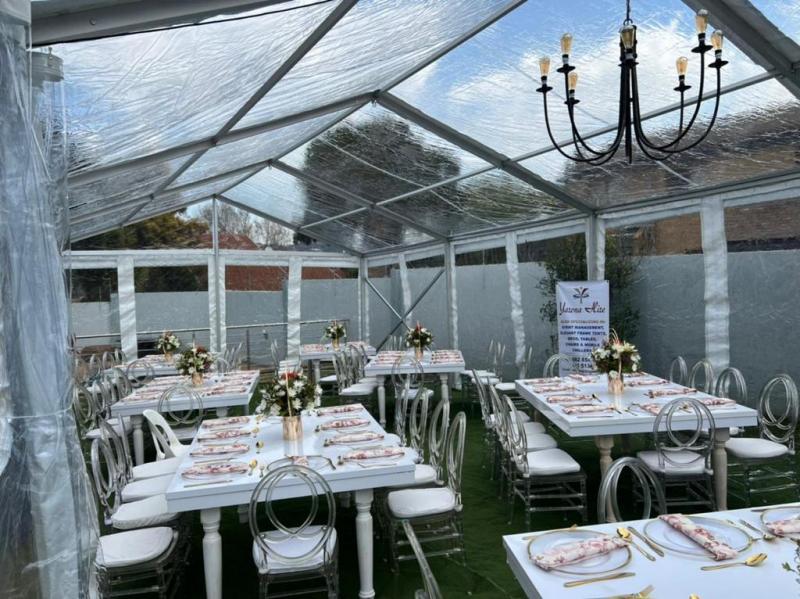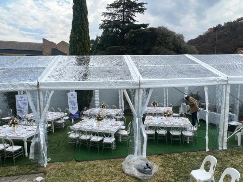 Sekwala Hiring trading as Sekwala and Son Tents Hire. Sekwala Hiring hire marquees, peg & pole tents, water proof stretch tents, artificial green grass (turf), rectangle & round tables, tiffany chairs, wimbledon chairs, white plastic chairs, food warmers, gas stoves, mkhukhu, pots, portable toilets, mobile or executive VIP his & her toilets and mobile fridges (chiller).